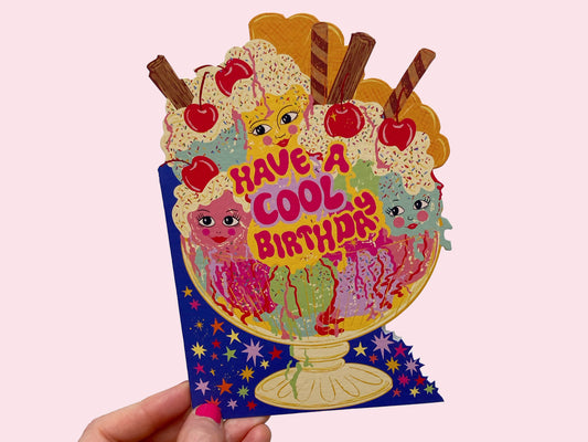 Cool Birthday Ice Cream Sundae Die-cut Greeting Card