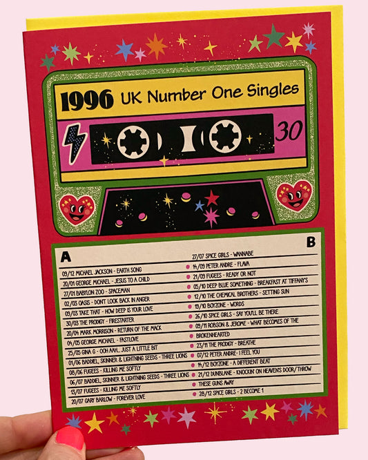 30th Birthday Greeting Card - Number One Chart Singles 1996 Card