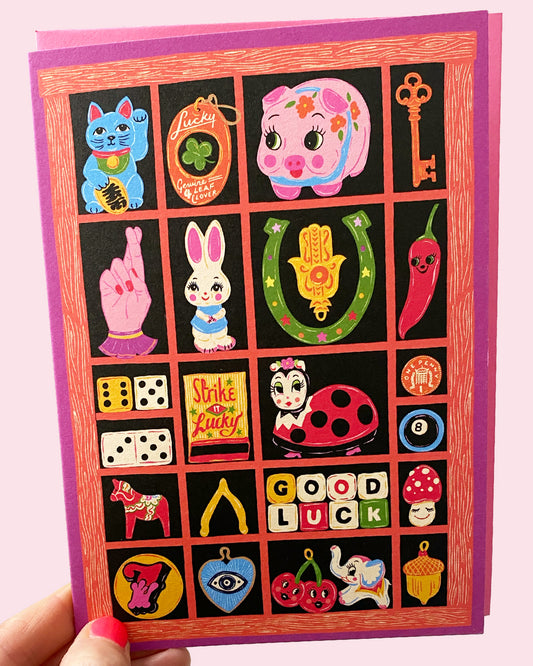 Good Luck Card- Trinkets Letter Press Print Tray Greeting Card - Tchotchkes Lucky Card