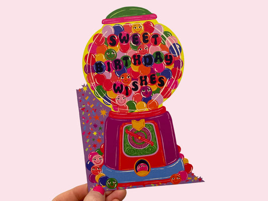 Gumball Machine - Sweet Birthday Wishes Cut Out Greeting Card