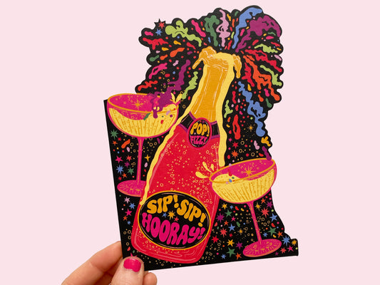 Sip Sip Hooray - Champagne Cut Out Greeting Card - Birthday - Congratulations