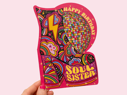 Soul Sister Cut Out Birthday Card - Funky Vibrant Die Cut Greeting Card