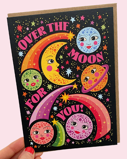 Over The Moon For You Greeting Card - Congratulations - Well Done - New Job - Graduation