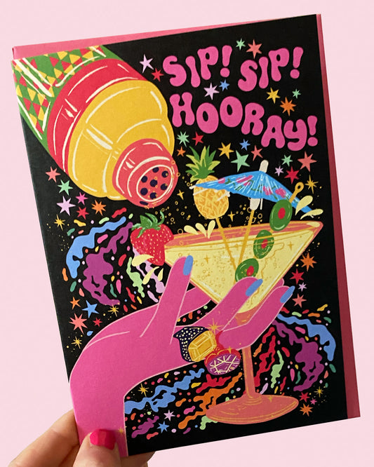 Sip Sip Hooray - Martini Cocktail Greeting Card - Birthday - Congratulations