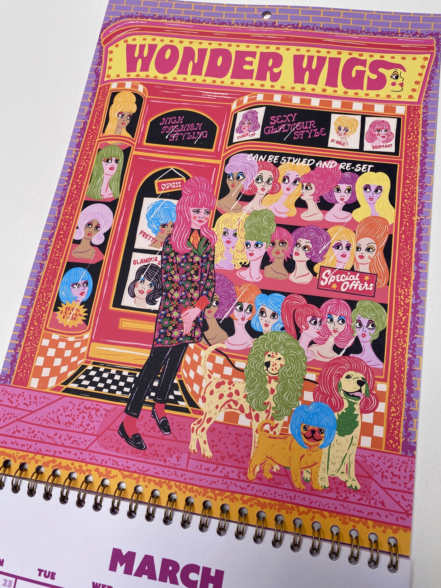 2026 Illustrated Wall Calendar - Retro Shopfronts 2026 Year Planner - 12 Month Hanging Calendar
