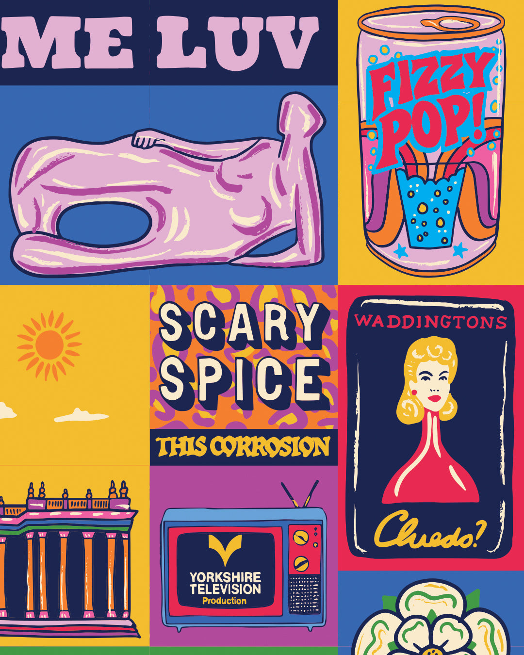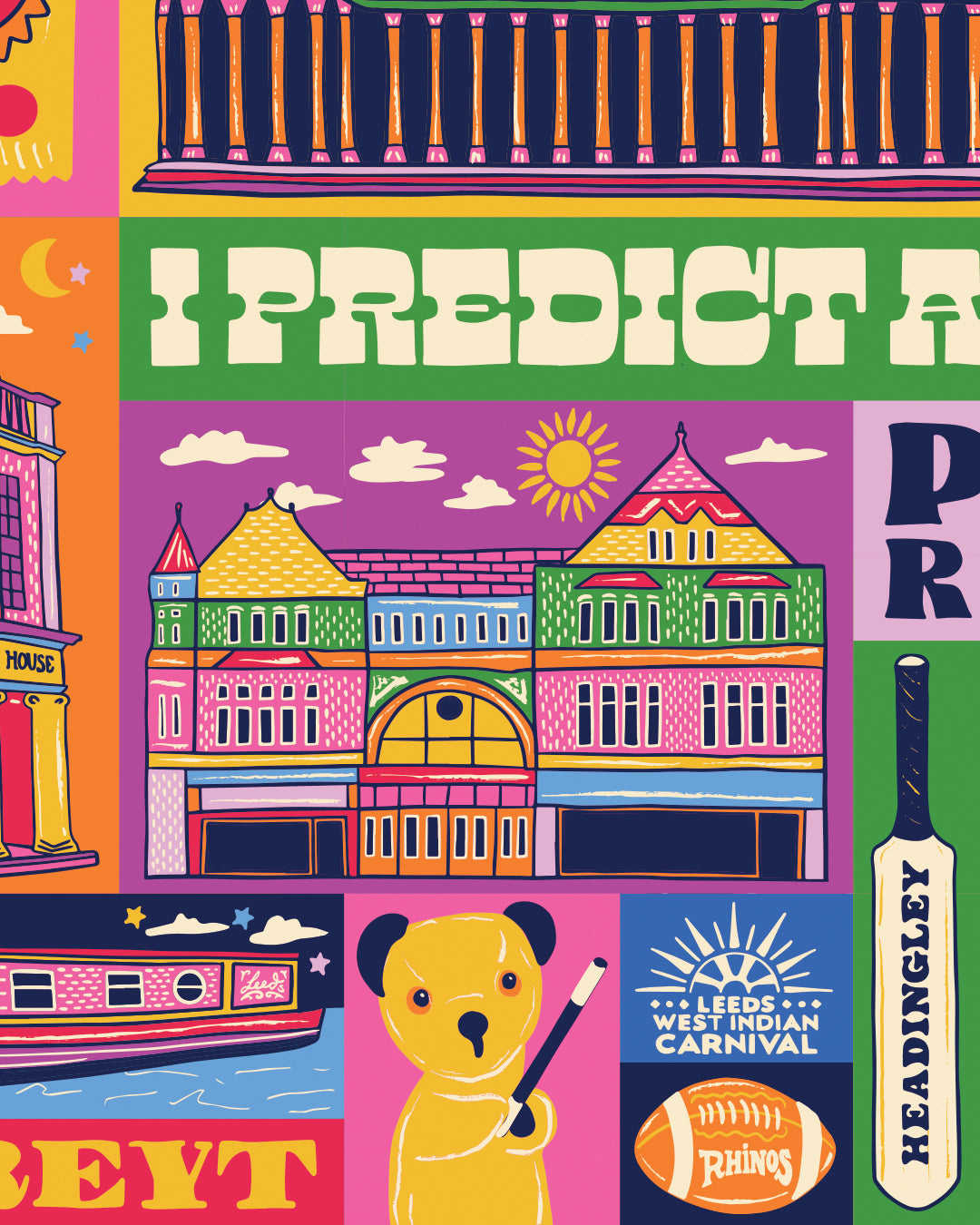 This Leeds illustrated print features architecture, popular culture, traditional culture, all things Leeds!