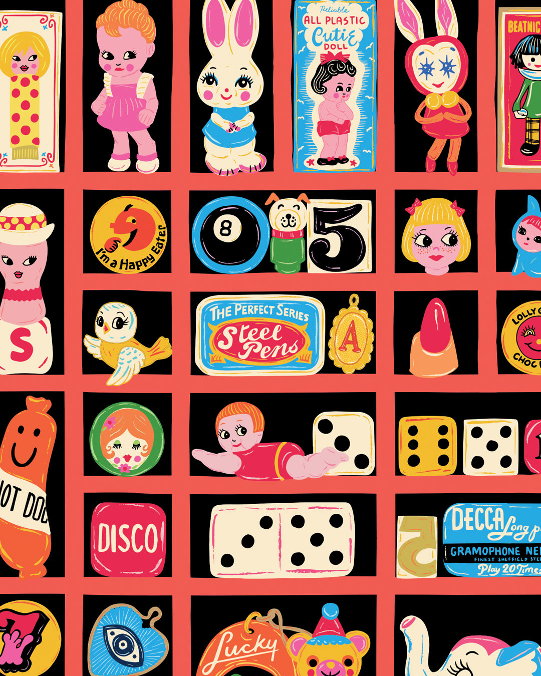 Trinkets Letter Press Print Tray Shelf Art Print - Tchotchkes Poster - Knick Knack Vintage Lucky Charms Collection Print